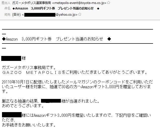 GAZOOMETAPOLISのAmazonギフト券の抽選企画で、見事当選www