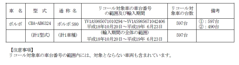 対象車種:2006年10月20日~07年6月23日に輸入された597台
